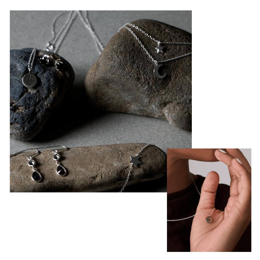 Each one is a small artefact - drawn from global symbols, ancient emotion, and everyday magic. We work in sterling silver for its permanence, for its memory. Sometimes, we set stones - chosen not for sparkle, but for what they signify. Every form is deliberate. Every detail, devotional.
